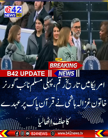امریکا میں تاریخ رقم ہو گئی ہے، جہاں ورجینیا ریاست میں پہلی بار مسلم نائب گورنر خاتون غزالہ ہاشمی نے قرآن پاک پر حلف اٹھا کر عہدہ سنبھالا۔ اس موقع پر ریاست کی تاریخ میں پہلی بار خاتون رہنما ایبی گیل اسپین برجر گورنر بنی ہیں، اور اٹارنی جنرل کا عہدہ سیاہ فام جے جونز نے سنبھالا، جو ریاست کی تاریخ میں پہلا موقع ہے۔