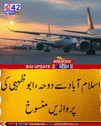ذرائع کے مطابق اسلام آباد سے دوحہ جانے والی قطر ایئر ویز کی پرواز منسوخ کر دی گئی جبکہ ابو ظہبی کیلئے اتحاد ایئر ویز کی فلائٹ بھی منسوخی کا شکار ہو گئی۔