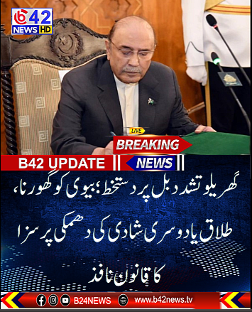 صدر مملکت آصف علی زرداری نے گھریلو تشدد سمیت سات اہم قوانین کی منظوری دے دی ہے، جس کے بعد یہ تمام قوانین باضابطہ طور پر ایکٹ آف پارلیمنٹ بن گئے ہیں۔ ان قوانین کے نفاذ کے بعد بیوی پر تشدد، اسے گھورنا، طلاق یا دوسری شادی کی دھمکی دینا قابلِ سزا جرم قرار دے دیا گیا ہے۔